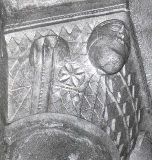 un canecillo interior en que aparece la Cruz de las Ocho Beatitudes, misteriosa