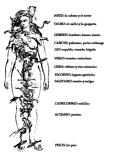 los doce signos zodiacales, los cuatro elementos y sus cualidades, y el