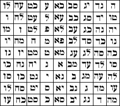 Damos aquí los cuadrados mágicos asignados a los distintos planetas incluyendo números y letras del alfabeto sagrado. Como hemos dicho el prototípico de tres columnas de lado es atribuido a Saturno, el de cuatro a Júpiter, el de cinco a Marte, el de seis al Sol, el de siete a Venus, el de ocho a Mercurio y el de nueve a la Luna, en perfecta vinculación con las equivalencias entre astros y sefiroth del Arbol cabalístico y sus respectivas numeraciones. Aunque la colocación de los números en cada casilla parece a primera vista caótica, por el contrario estas cifras están colocadas de modo tal que reflejan asombrosamente la armonía del universo y el carácter mágico-teúrgico de estas estructuras simbólicas, lo cual se observa en el hecho de que la suma de los números de todas las casillas horizontales, verticales y diagonales es siempre idéntica. En el caso del cuadrado de Júpiter o cuadrado de cuatro, de dieciséis casillas, se observa una perfección aún mayor ya que también los cuatro números centrales, los cuatro de las esquinas y los que se oponen dos a dos en el centro de las horizontales y las verticales, suman también 34. Se recomienda el ejercicio de calcular el valor numérico de las letras del alfabeto hebreo que figuran en cada casilla y comparar dicho valor con el número asignado a esa casilla. Este ejercicio de sustituir las letras por sus equivalentes numerales, tomando como modelo el cuadrado de Saturno, se podrá ir repitiendo en los distintos cuadrados mágicos planetarios que damos a continuación. Se recuerda al lector que el alfabeto hebreo se lee de derecha a izquierda, y que así han de leerse los valores representados por más de un dígito. Recordamos aquí que los pitagóricos juraban no sólo por la Sagrada Tetraktys sino también por el Cuadrado de Cuatro.